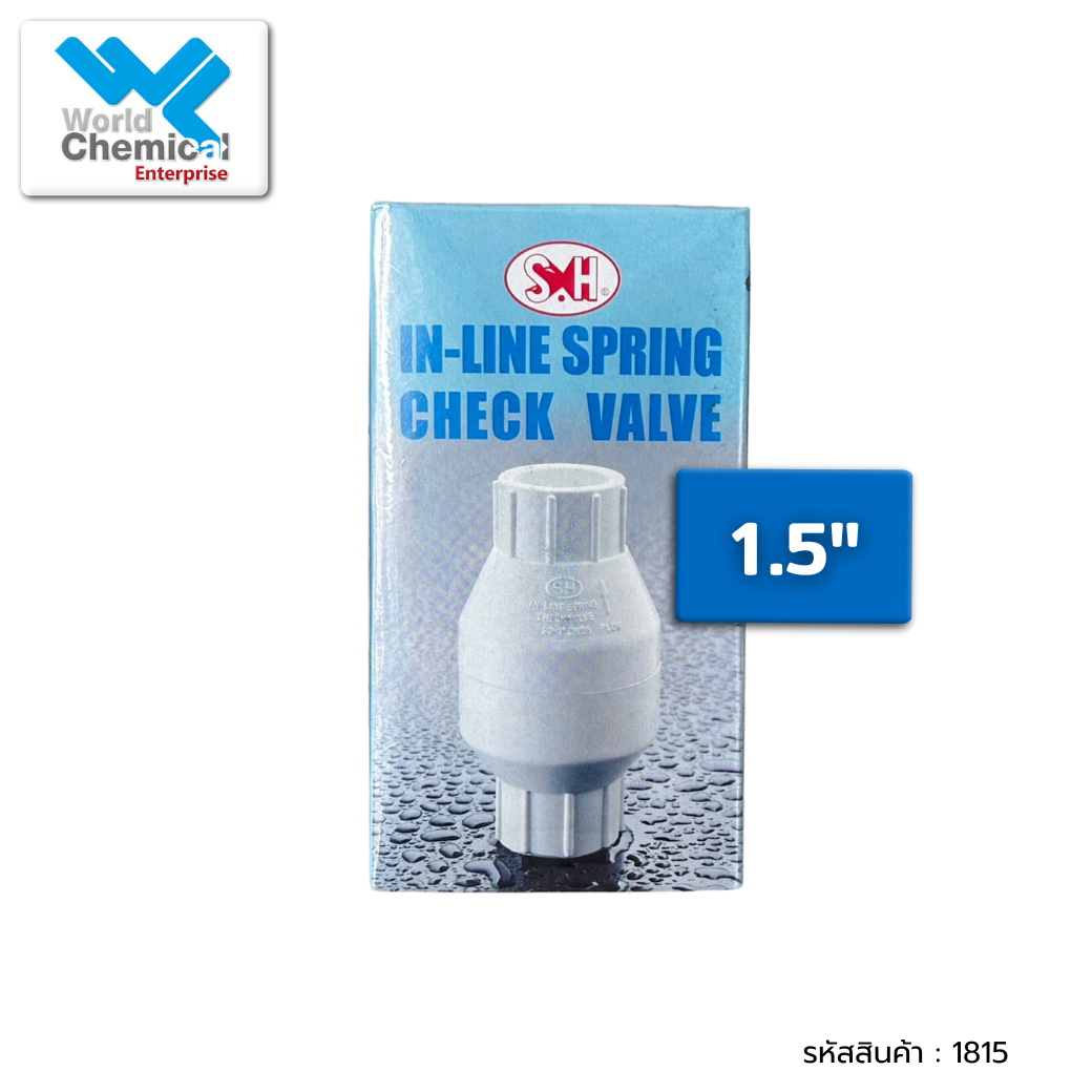 สปริงเช็ควาล์ว IN-LINE (Spring Check Valve In-Line) ขนาด 1.5 นิ้ว คือวาล์วกันกลับชนิดหนึ่งที่ทำงานโดยใช้แรงของสปริง เพื่อป้องกันการไหลย้อนกลับของของไหล (เช่น น้ำ ลม หรือของเหลวอื่น ๆ) ภายในระบบท่อ โดยจะเปิดเมื่อของไหลไหลไปในทิศทางที่ต้องการ และจะปิดทันทีเมื่อของไหลพยายามไหลย้อนกลับ